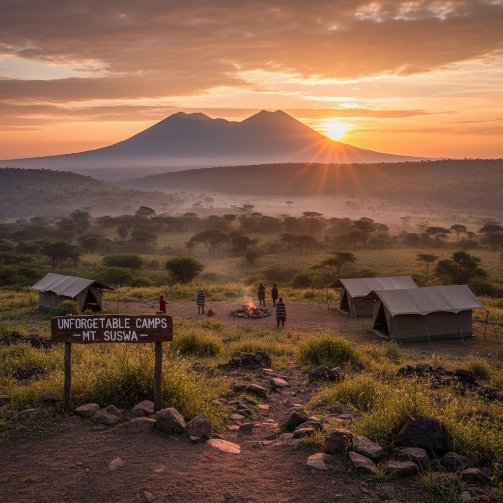 Breathe taking morning view of Mt. Suswa at our unforgettable camps.